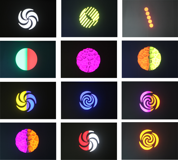 静态Gobo滚轮:8 +开口(8个压印),以可变速度连续滚动